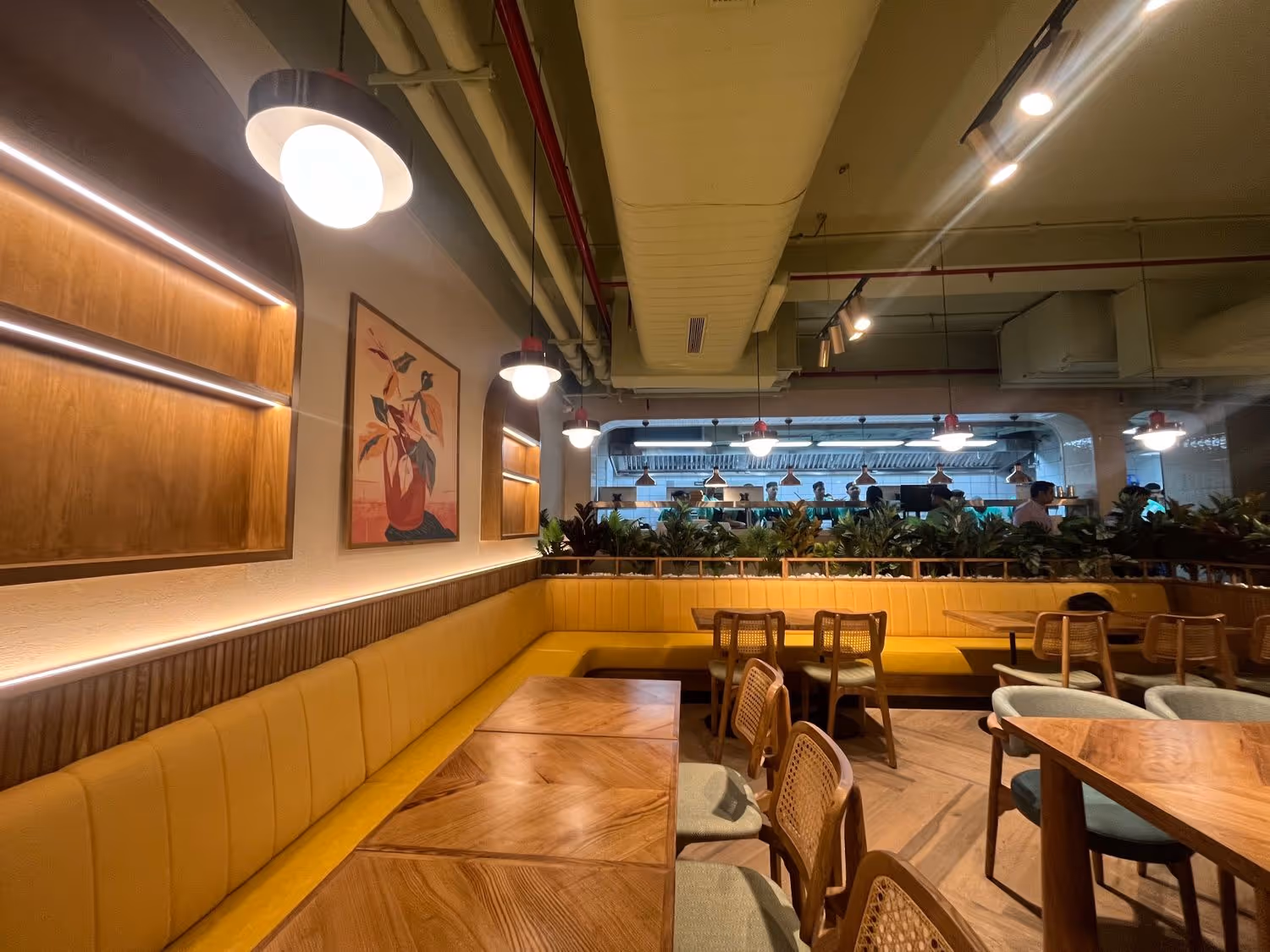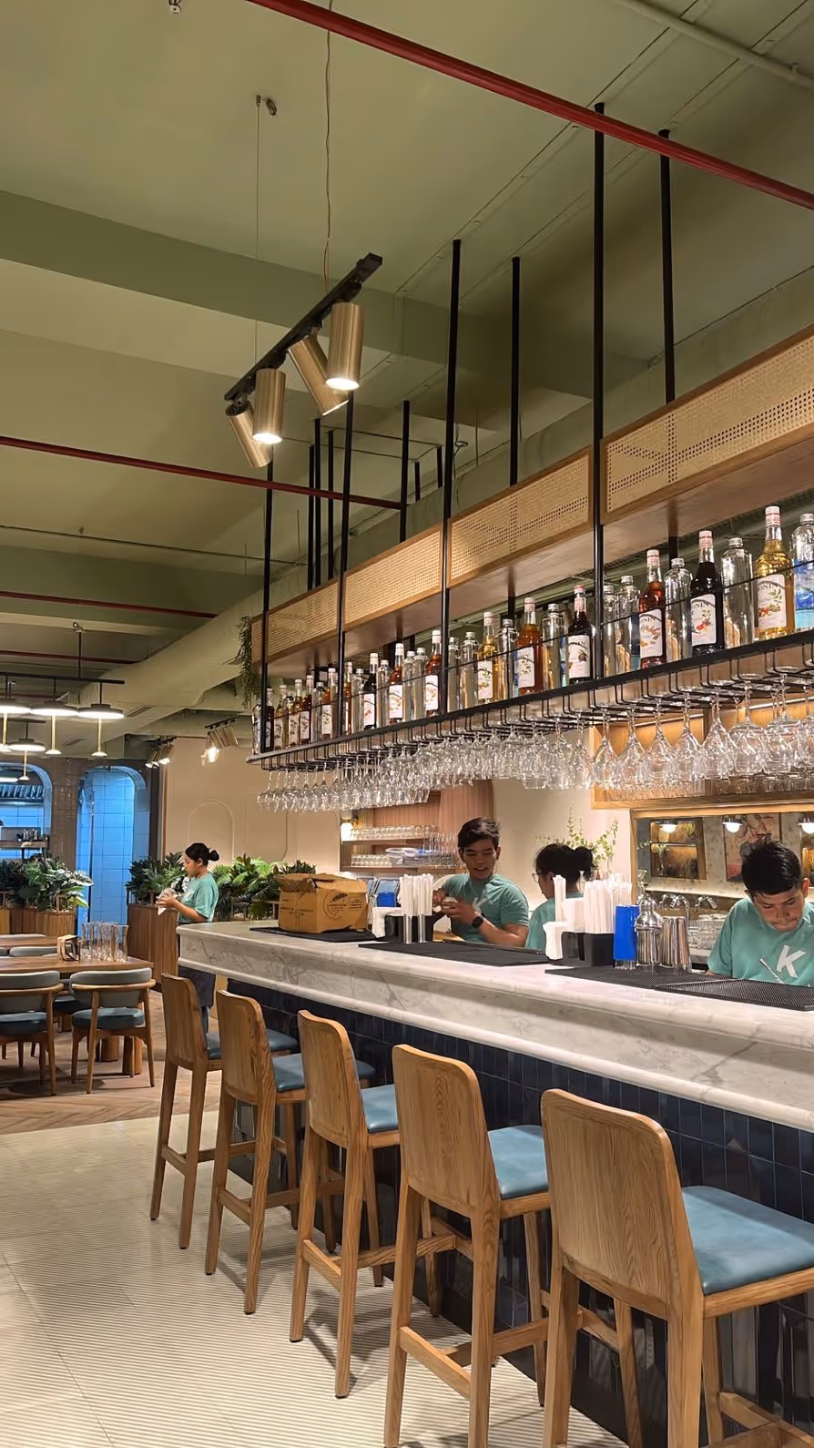 For Jamie Oliver’s Kitchen, we designed a chic-modern space with a diner-inspired vibe. The thoughtful use of greens adds a fresh, appetizing touch that perfectly complements the culinary experience. Our goal was to create a clean, understated aesthetic that aligns seamlessly with the brand’s existing restaurant line. Drawing inspiration from the signature colour palette, we incorporated muted materials like natural wood and cane to evoke a warm, subtle elegance.