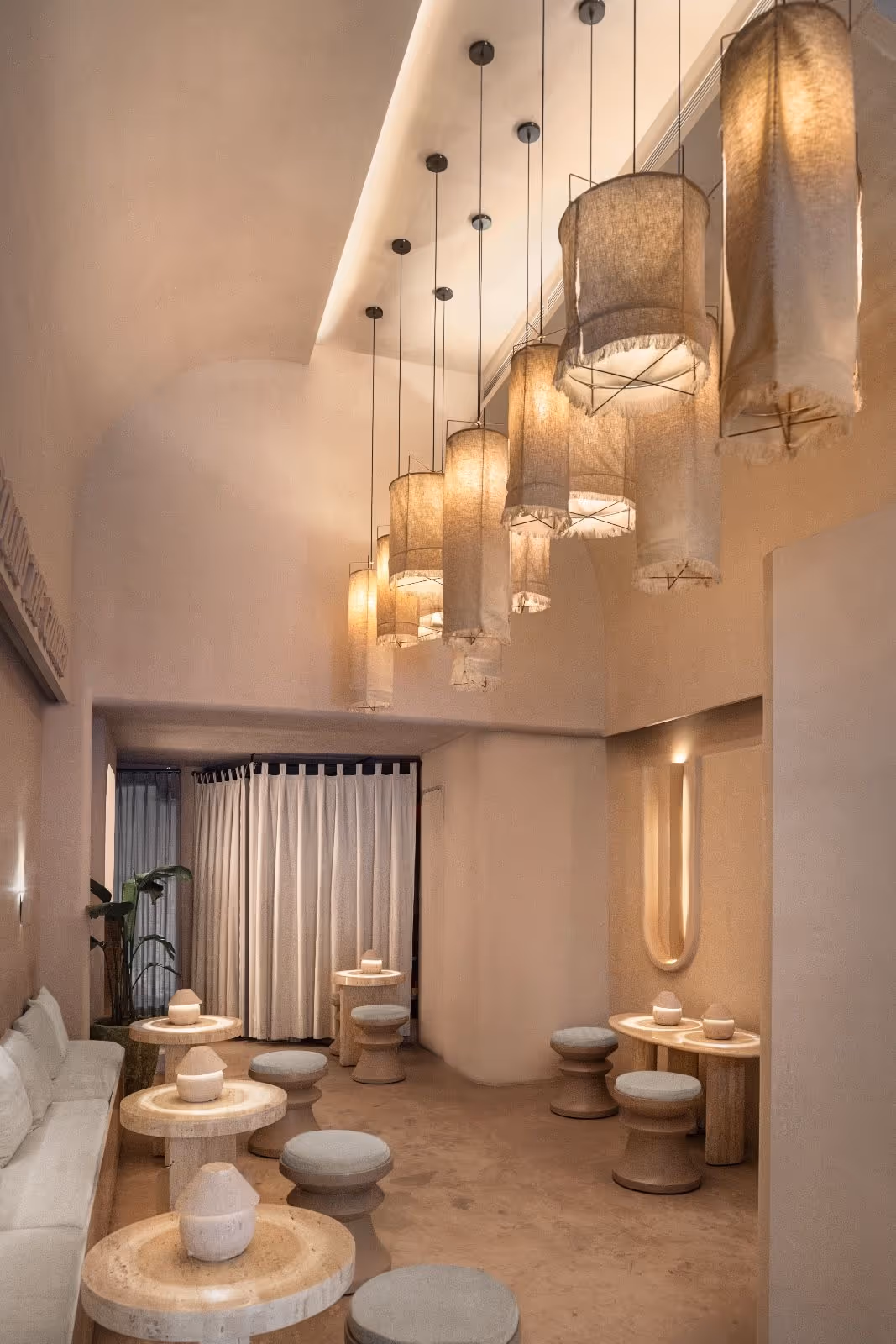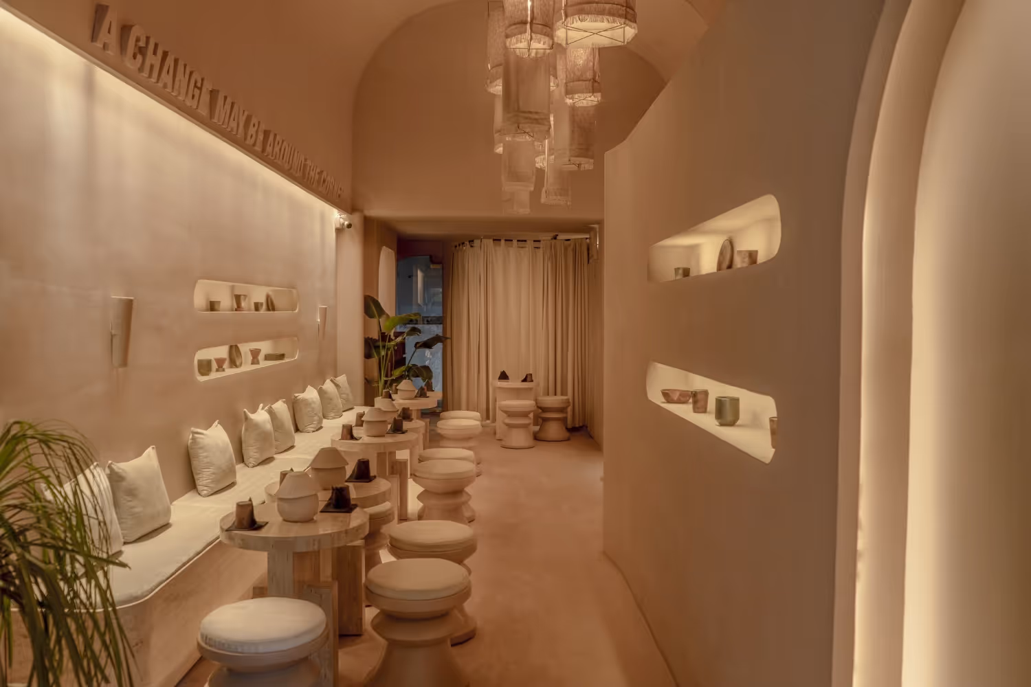 People of Tomorrow 2.0 presents a sophisticated twist on the Japandi aesthetic, characterised by neutral hues, soft curves and warm lighting. The space offers a tranquil atmosphere, perfect for indulging in the restaurant’s exquisite vegan dishes. With sustainable materials such as Fuller’s earth, recycled cork and wood, and hemp cloth, the design fosters a calming connection to nature.