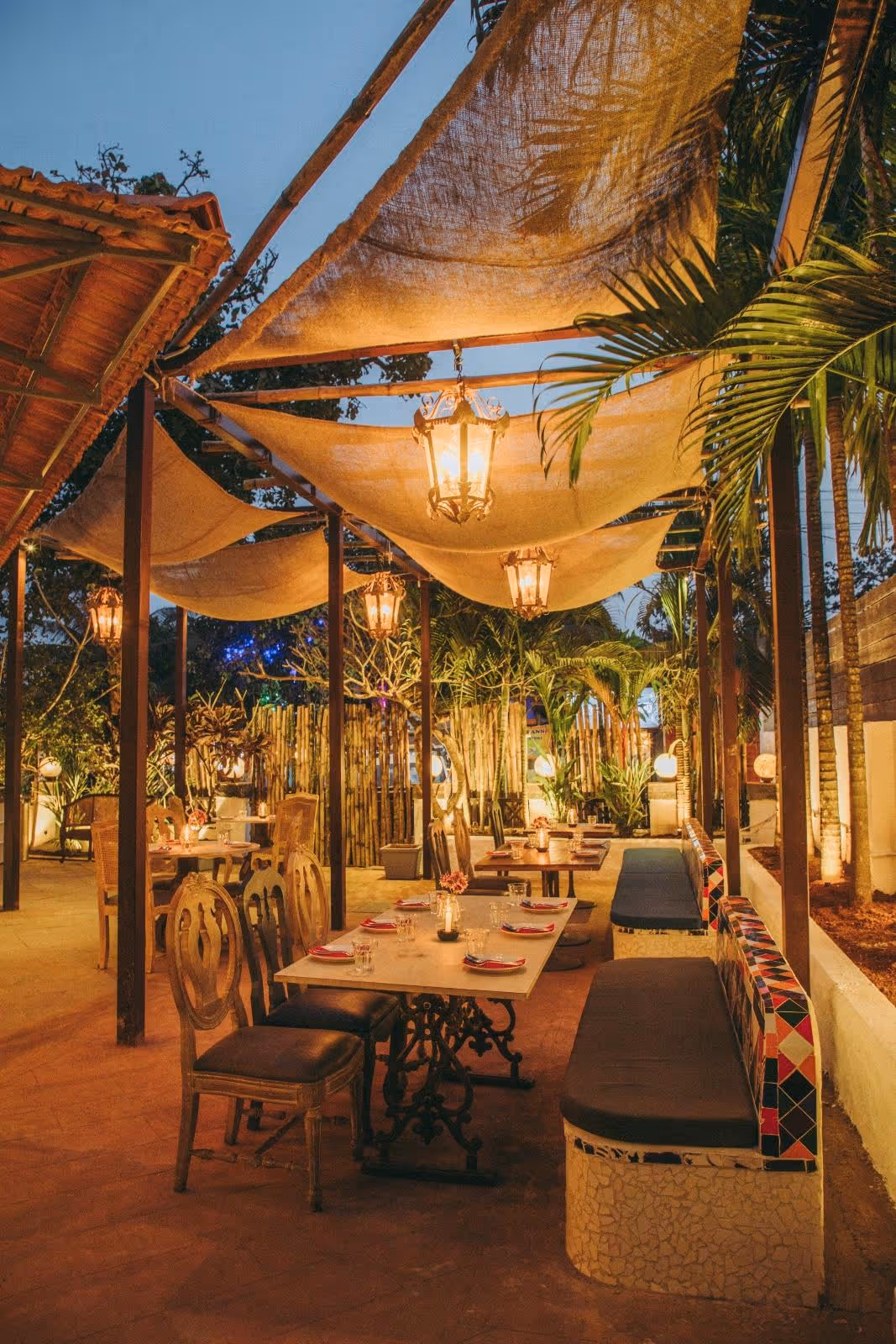 Uno Mas, Goa, draws inspiration from vibrant Spanish culture. Colorful tiles combined with rustic paint finishes evoke a ‘lived-in’ feel, reminiscent of a vintage bungalow. The use of wicker pays homage to Mediterranean influences, adding warmth and texture to the space.